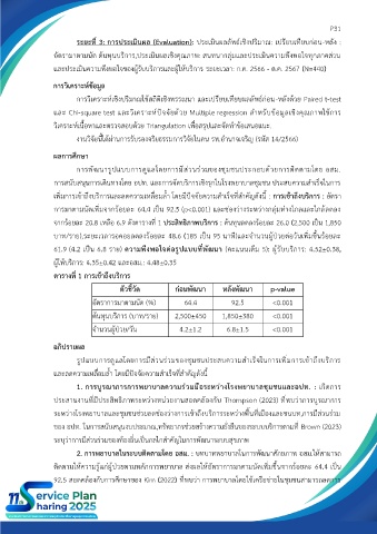 ต้นทุนบริการ (บาท/ราย) 2,500±450 1,850±380 <0.001