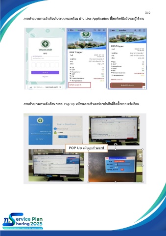 Q10 ภาพตัวอย่างการแจ้งเตือนในระบบหมอพร้อม ผ่าน Line Application ที่โทรศัพท์มือถือของผู้ใช้งาน ภาพตัวอย่างการแจ้งเตือน ระบบ Pop Up หน้าจอคอมพิวเตอร์ภายในตึกที่ติดตั้งระบบแจ้งเตือน