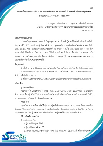 เป็น 2 กลุ่ม คือ กลุ่มที่ได้รับโปรแกรมการเฝ้าระวังและป้องกันการเกิดแผลกดทับ และกลุ่มที่ไม่ได้รับ