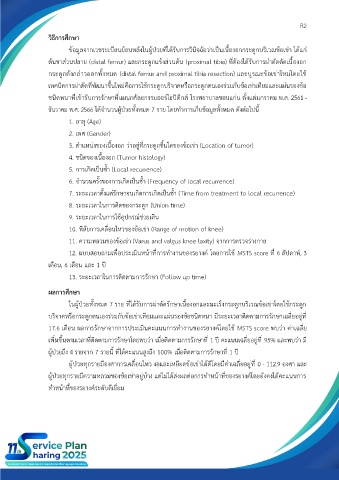 ข้อมูลจากเวชระเบียนย้อนหลังในผู้ป่วยที่ได้รับการวินิจฉัยว่าเป็นเนื้องอกกระดูกบริเวณข้อเข่า ได้แก่