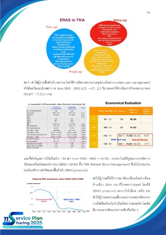 ทำให้ลดวันนอนโรงพยาบาล (non ERAS : ERAS LOS = 6.5 : 2.3 วัน) และค่าใช้จ่ายในการรักษาพยาบาลลง