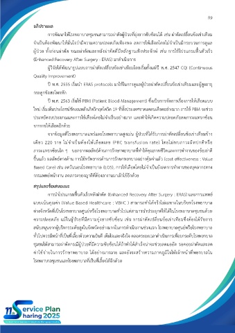 ผู้ป่วย ทั้งก่อนผ่าตัด ขณะผ่าตัดและหลังผ่าตัดที่มีหลักฐานเชิงประจักษ์ เช่น การใช้โปรแกรมฟื้นตัวเร็ว