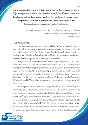 การพัฒนาแนวทางปฏิบัติการพยาบาลเพื่อเฝ้าระวังการเกิดภาวะ Compartment syndrome