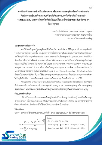 vertebroplasty และการยึดสกรูโดยไม่ใช้ซีเมนต์ ในการยึดปล้องกระดูกสันหลังส่วนเอว