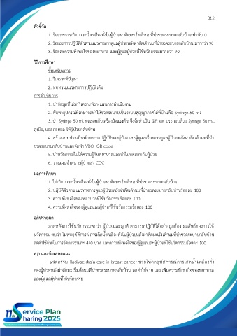 1. ไม่เกิดภาวะน้ำเหลืองคั่งในผู้ป่วยผ่าตัดมะเร็งเต้านมที่นำขวดระบายกลับบ้าน