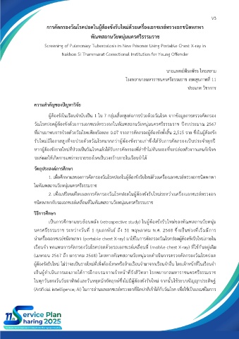วัณโรคปอดผู้ต้องขังด้วยการเอกซเรย์ทรวงอกในทัณฑสถานวัยหนุ่มนครศรีธรรมราช ปีงบประมาณ 2567