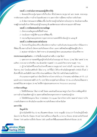 ที่พัฒนาขึ้น ผลการเฝ้าระวัง อัตราความสำเร็จของการรักษา และความพึงพอใจของผู้ให้และผู้รับบริการ