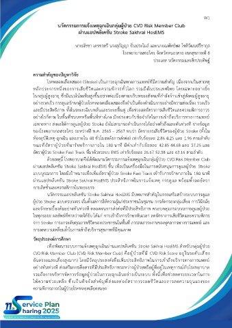 จาก Stroke การยกระดับคุณภาพชีวิตของประชาชนในพื้นที่ การลดภาระงานของบุคลากรทางการแพทย์ และ