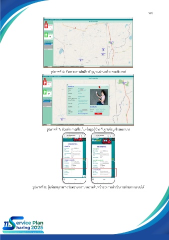 W6 รูปภาพที่ 6: ตัวอย่างการส่งเสียงสัญญาณผ่านเครื่องคอมพิวเตอร์ รูปภาพที่ 7: ตัวอย่างการเชื่อมโยงข้อมูลผู้ป่วยกับฐานข้อมูลโรงพยาบาล รูปภาพที่ 8: ผู้แจ้งเหตุสามารถรับทราบสถานะความคืบหน้าของการดำเนินงานผ่านทางระบบได้
