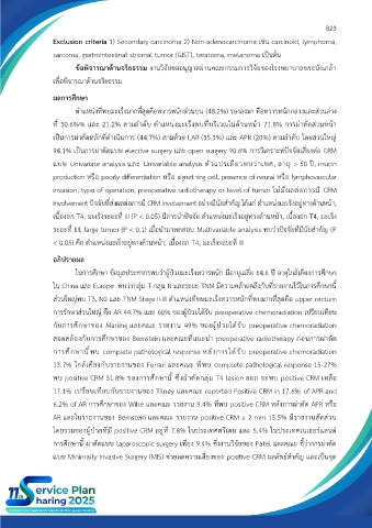 Exclusion criteria 1) Secondary carcinoma 2) Non-adenocarcinoma เช่น carcinoid, lymphoma,
