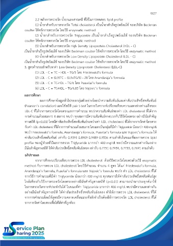 จากการศึกษาเปรียบเทียบการตรวจ LDL cholesterol ด้วยวิธีตรวจวัดโดยตรงด้วยวิธี enzymatic
