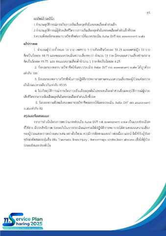 จากการดำเนินโครงการพบว่าแบบประเมิน Autar DVT risk assessment scale เป็นแบบประเมินฅ