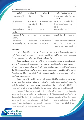 ระยะเวลานอน ICU 7 วัน 5 วัน ค่าเฉลี่ยตามแนวทาง Service Plan