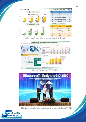 Y5 รูปที่ 6 ข้อมูลบริการผู้ป่วย โรงพยาบาลมะเร็งอุดรธานี 2563-2566 รูปที่ 7 จำนวนผู้ป่วยที่เข้ารับบริการโทรเวช รูปที่ 8 Electronic referral system รพ.มะเร็งอุดรธานี ได้รับรางวัลเลิศรัฐระดับดี ปี 2566