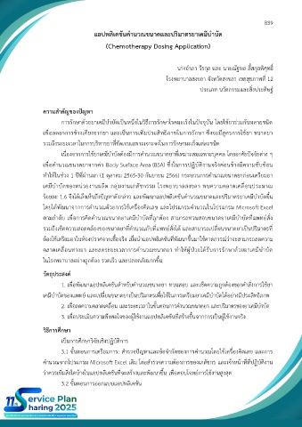 ร้อยละ 1.6 จึงได้เล็งเห็นถึงปัญหาดังกล่าว และพัฒนาแอปพลิเคชันคำนวณขนาดและปริมาตรยาเคมีบำบัดขึ้น