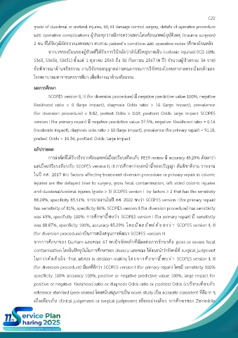and duodenal/ureteral injuries (grade > 3) SCOPES version I by factors > 2 that has the sensitivity