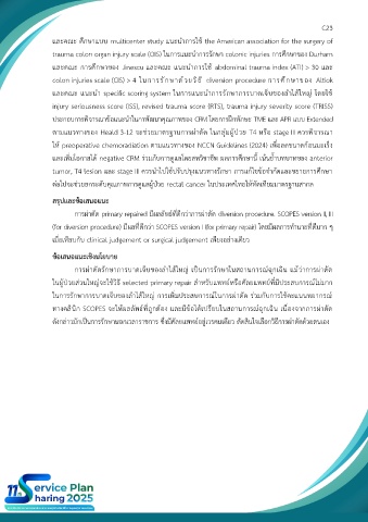 ในการรักษาการบาดเจ็บของลำไส้ใหญ่ การเพิ่มประสบการณ์ในการผ่าตัด ร่วมกับการใช้คะแนนพยากรณ์