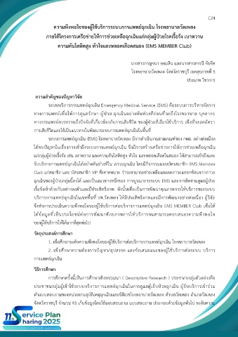 ความพึงพอใจของผู้ใช้บริการระบบการแพทย์ฉุกเฉิน โรงพยาบาลวัดเพลง