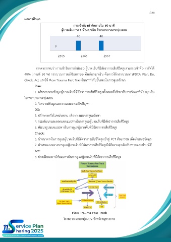 40% (เกณฑ์ 60 %) กระบวนการแก้ปัญหาของทีมห้องฉุกเฉิน คือการใช้กระบวนการPDCA: Plan, Do,