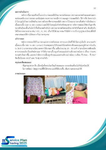เนื้อแนบเนื้อ (skin to skin contact) และใช้ผ้าโอบอุ่นไอรักช่วยรัดพยุงทารก หลังการทดลองใช้พบปัญหาคือ