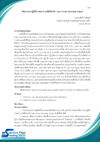 จากปัญหาดังกล่าวจึงได้พัฒนาแนวปฏิบัติการพยาบาลเพื่อป้องกัน Late Onset Neonatal Sepsis