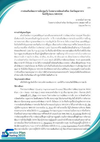 กิจกรรมการพัฒนา (Quality Improvement Process) ใช้แนวคิดการพัฒนาคุณภาพ PDSA