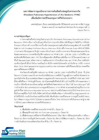 1. เพื่อเพิ่มอัตรารอดชีวิตทารกแรกเกิด PPHN ให้ ≥ ร้อยละ 50