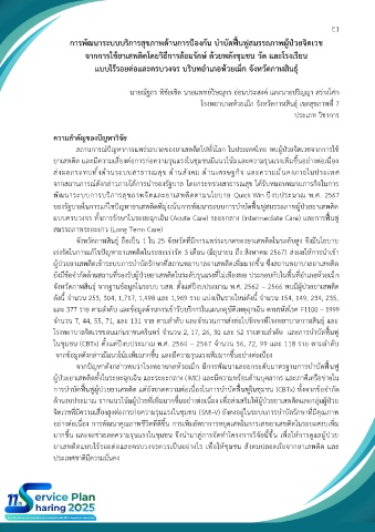 มากขึ้น และจะช่วยลดความรุนแรงในชุมชน จึงนำมาสู่การจัดทำโครงการวิจัยนี้ขึ้น เพื่อให้การดูแลผู้ป่วย