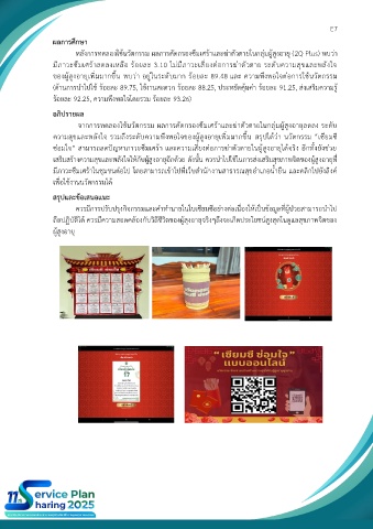 ความสุขและพลังใจ รวมถึงระดับความพึงพอใจของผู้สูงอายุเพิ่มมากขึ้น สรุปได้ว่า นวัตกรรม “เซียมซี