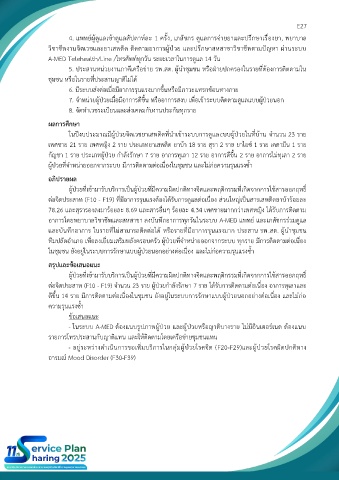 ต่อจิตประสาท (F10 - F19) จำนวน 23 ราย ผู้ป่วยกำลังรักษา 7 ราย ได้รับการติดตามต่อเนื่อง อาการทุเลาและ