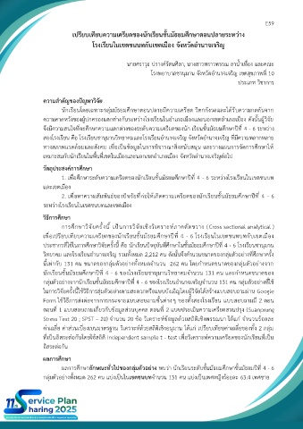 เพื่อเปรียบเทียบความเครียดของนักเรียนชั้นมัธยมศึกษาปีที่ 4 - 6 โรงเรียนในเขตชนทบทกับเขตเมือง