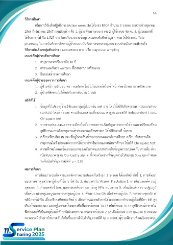 ได้รับยาวาร์ฟาริน 1,527 ราย โดยเก็บรวบรวมข้อมูลโดยแบบบันทึกข้อมูล 4 ส่วน ใช้โปรแกรม Tele