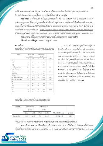 ตารางที่ 2 แสดงการเปรียบเทียบระดับ HbA1c ระหว่างกลุ่มที่ได้รับการรักษาแบบดั้งเดิมและ