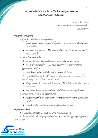 1. เพื่อพัฒนาระบบบริการ Home Ward ที่มีคุณภาพ ครอบคลุม และยั่งยืน