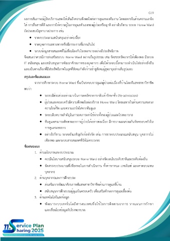 จึงเสนอว่าควรมีการส่งเสริมระบบ Home Ward อย่างเป็นรูปธรรม เช่น จัดสรรทรัพยากรให้เพียงพอ มีระบบ