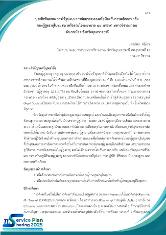 ที่กล่าวมาผู้วิจัยจึงสนใจศึกษารูปแบบการการจัดการตนเองเพื่อป้องกันการพลัดตกหกล้มของผู้สูงอายุในชุมชน