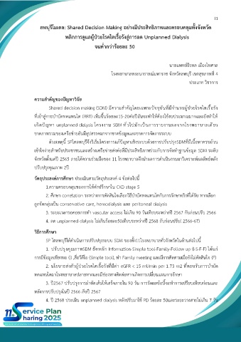 เกิดปัญหา unplanned dialysis โครงงาน SDM ทั่วไปมักเป็นการรายงานผลจากโรงพยาบาลเดียว