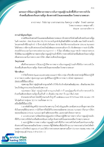 กลุ่มควบคุม ได้แก่ กลุ่มผู้ป่วยเด็กอายุแรกเกิดถึง 5 ปี ที่มารับบริการในช่วงเดือนมิถุนายน - เดือนกันยายน 2566