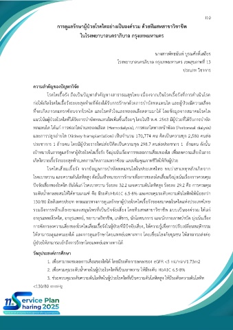 2. เพื่อควมคุมระดับน้ำตาลในผู้ป่วยโรคไตที่เป็นเบาหวาน ให้มีระดับ HbA1C 6.5-8%