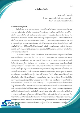 โรคไตเรื้อรัง (Chronic Kidney Disease ,CKD) เป็นโรคที่เป็นปัญหาสาธารณสุขของประเทศไทยจาก