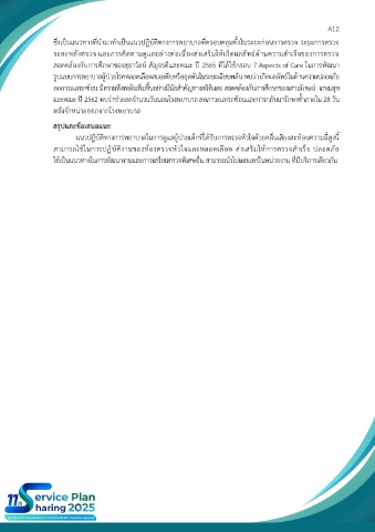 สอดคล้องกับการศึกษาของสุธาวัลย์ สัญจรดีและคณะ ปี 2565 ที่ได้ใช้กรอบ 7 Aspects of Care ในการพัฒนา