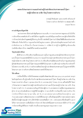 โดยมีกลุ่มตัวอย่าง คือ ผู้ป่วยที่มารับบริการผ่าตัดจอประสาทตาและน าวุ้นตา ที่หอผู้ป่วยโสต ศอ นาสิก จักษุ