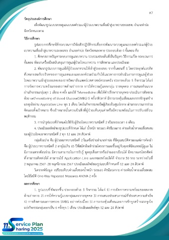 2 พฤษภาคม 2567- 28 พฤศจิกายน 2567 ประเมินผลลัพธ์ของรูปแบบที่กำหนดที่ 12 และ 24 สัปดาห์