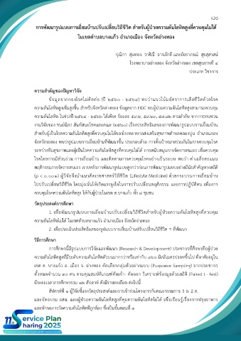 (p < ๐.๐๐๑) ผู้วิจัยจึงนำแนวคิดเวชศาสตร์วิถีชีวิต (Lifestyle Medicine) ด้วยกระบวนการเยี่ยมบ้าน