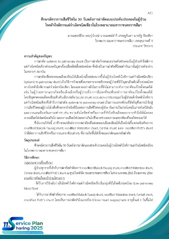 ซึ่งในงานวิจัยนี้ เราศึกษาผลลัพธ์จากการผ่าตัดเพื่อต่อหลอดเลือดเทียมให้เลือดไปเลี้ยงปอดในหัตถการ