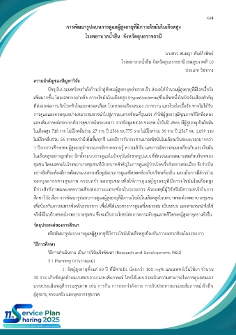 จริงได้ในบริบทของโรงพยาบาลชุมชน ซึ่งจะเป็นประโยชน์ต่อการยกระดับคุณภาพชีวิตของผู้สูงอายุอย่างยั่งยืน