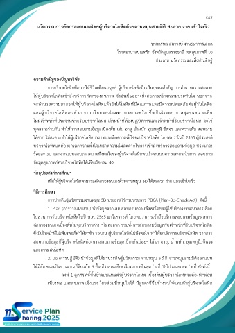 1. Plan (การวางแผนงาน) นำข้อมูลจากแบบสอบถามความพึงพอใจของผู้ใช้บริการงานธนาคารเลือด