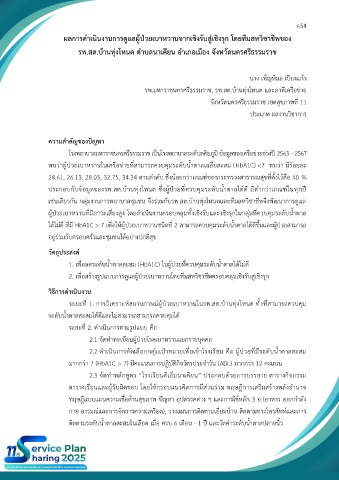 ผู้ป่วยเบาหวานที่มีภาวะเสี่ยงสูง โดยดำเนินงานครอบคลุมทั้งเชิงรับและเชิงรุกในกลุ่มที่ควบคุมระดับน้ำตาล