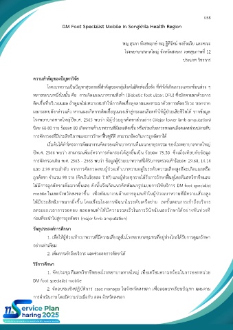 mobile ในเขตจังหวัดสงขลาขึ้น เพื่อพัฒนางานด้านการดูแลเท้าในผู้ป่วยเบาหวานที่มีความเสี่ยงสูง