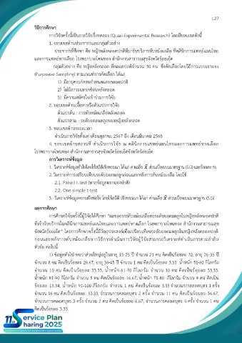 3. วิเคราะห์ข้อมูลความพึงพอใจ โดยใช้สถิติ เชิงพรรณา ได้แก่ ค่าเฉลี่ย ̅ ส่วนเบี่ยงเบนมาตรฐาน (S.D)